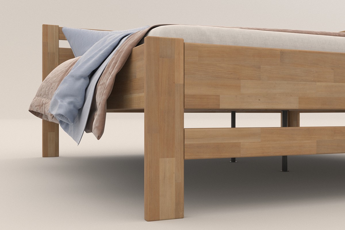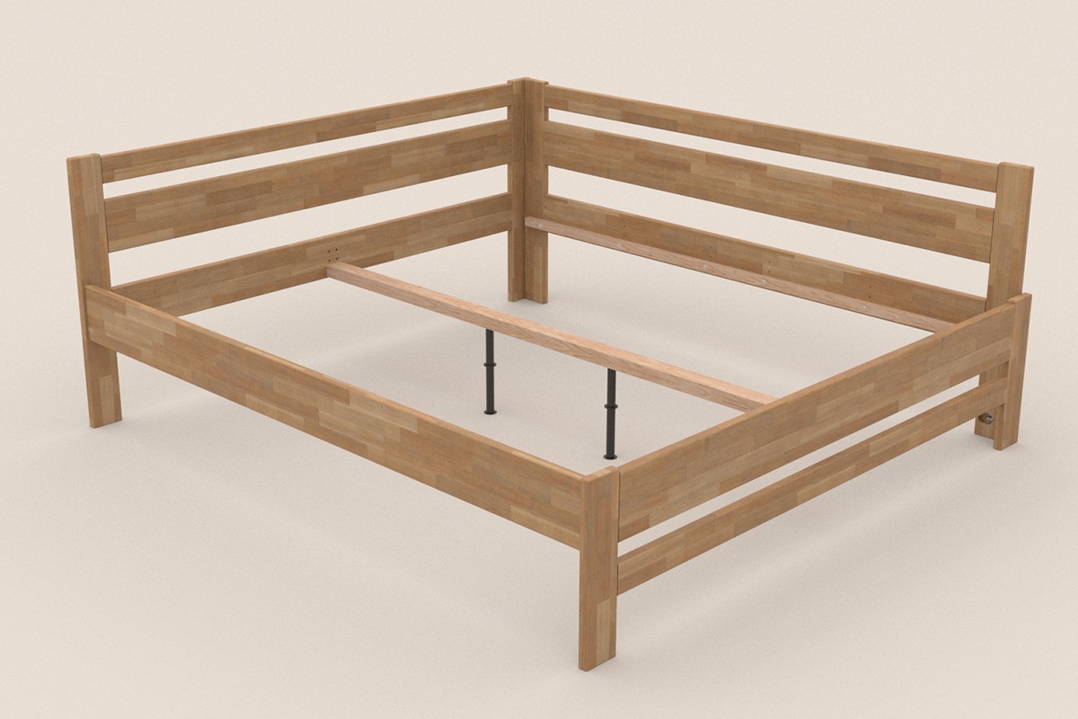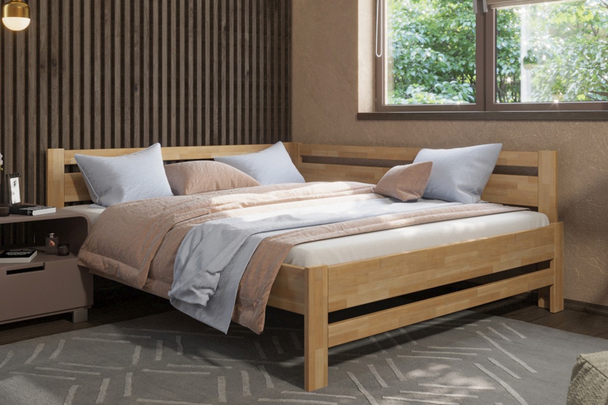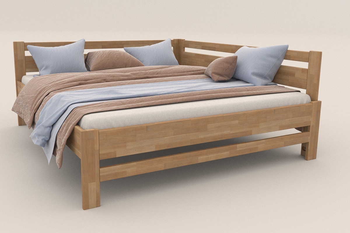 Rohová dřevěná postel Emily, pravý roh, provedení BK1, 180x200 cm