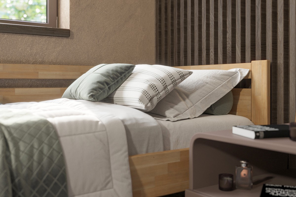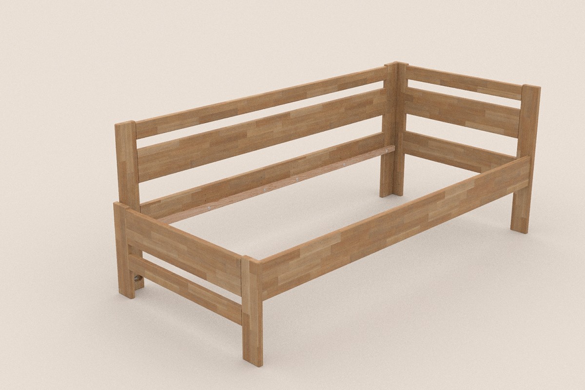 Jednolůžková rohová dřevěná postel Emily, levý roh, provedení BK1, 90x200 cm