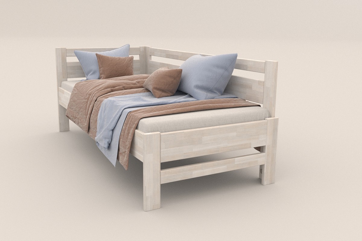 Jednolůžková rohová dřevěná postel Emily, pravý roh, provedení BO102 bílá, 120x200 cm