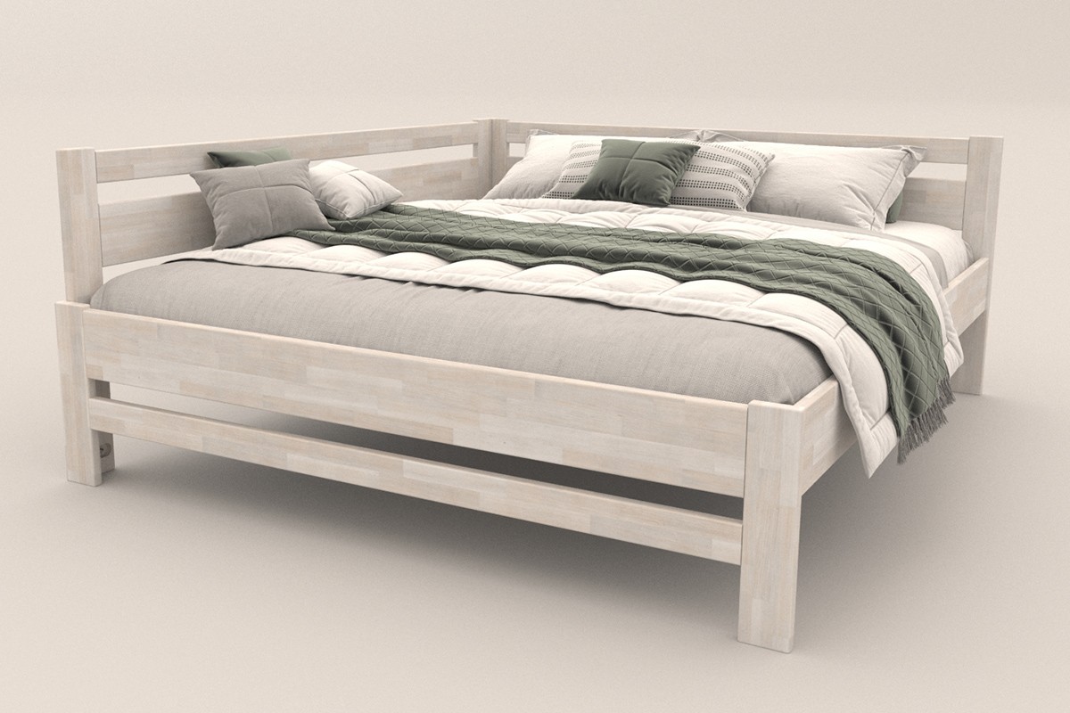 Rohová dřevěná postel Emily, levý roh, provedení BO102 bílá, 180x200 cm
