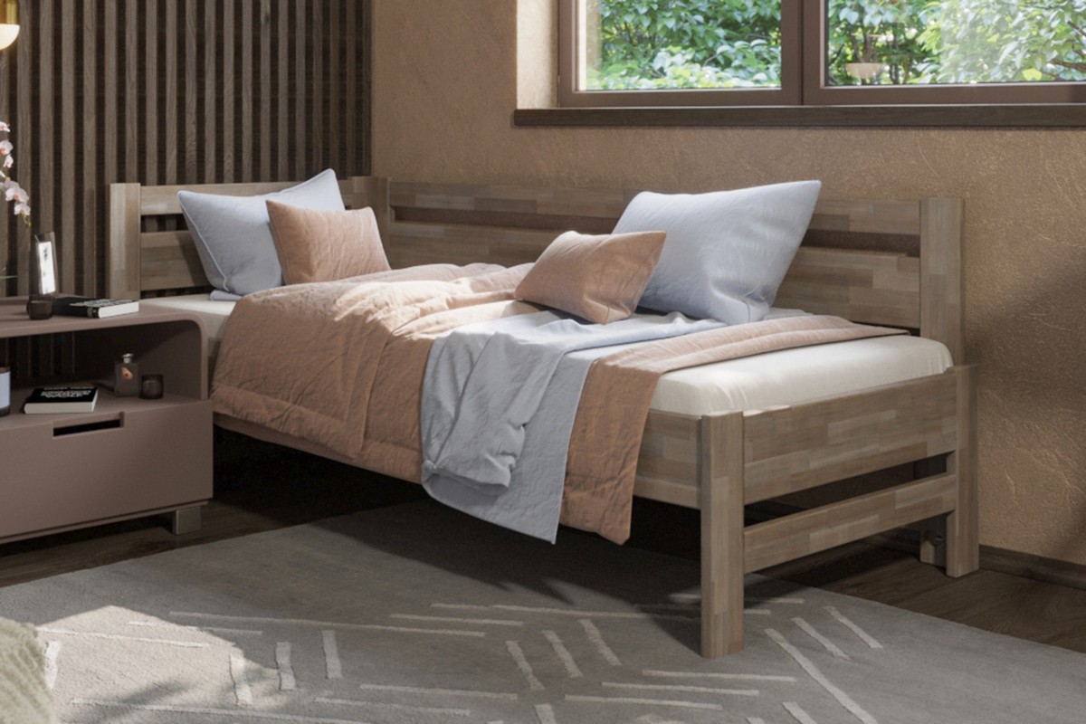 Jednolůžková rohová dřevěná postel Emily, pravý roh, provedení BO105 šedý granit, 90x200 cm
