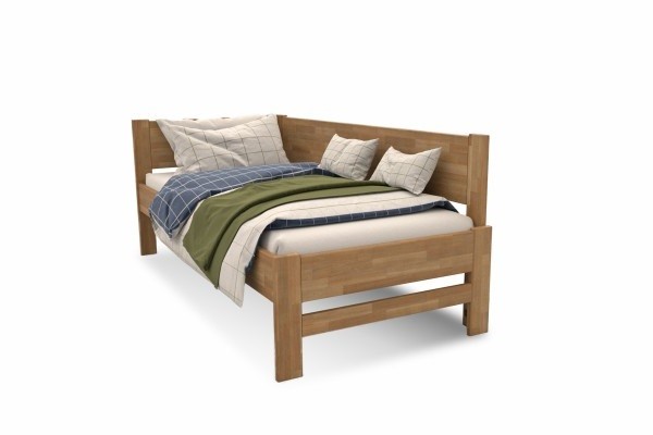 Jednolůžková rohová dřevěná postel Emily, levý roh, provedení D1, 90x200 cm