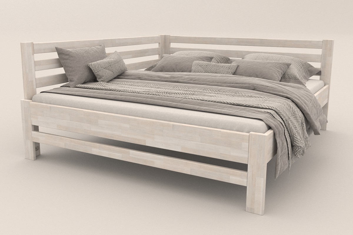 Rohová dřevěná postel Stacy, levý roh, provedení BO102 bílá, 160x200 cm