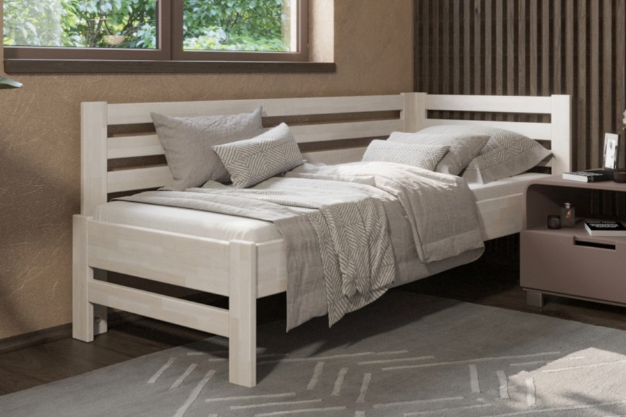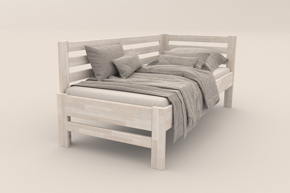 Jednolůžková rohová dřevěná postel Stacy, levý roh, provedení BO102 bílá, 90x200 cm