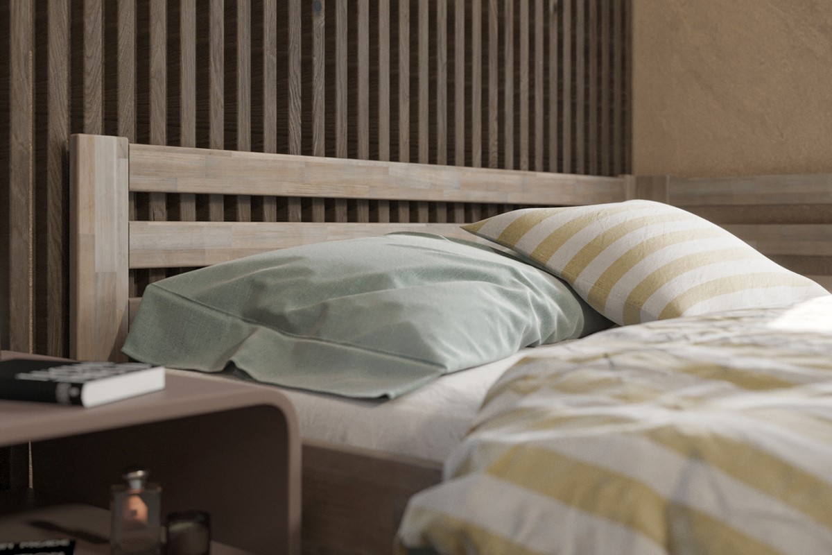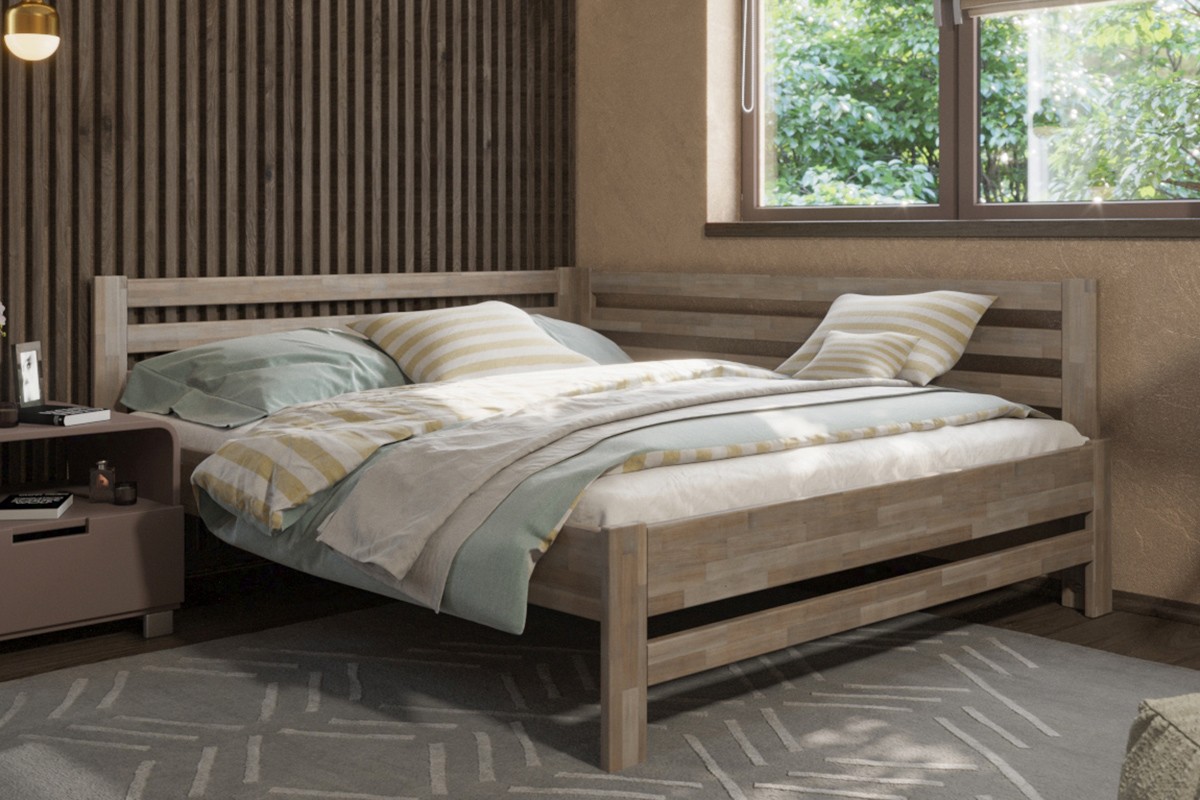 Rohová dřevěná postel Stacy, pravý roh, provedení BO105 šedý granit, 140x200 cm