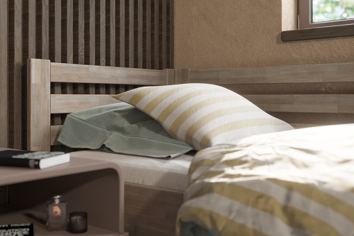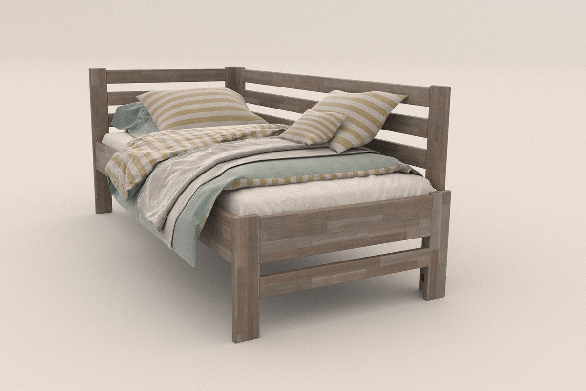 Jednolůžková rohová dřevěná postel Stacy, pravý roh, provedení BO105 šedý granit, 90x200 cm