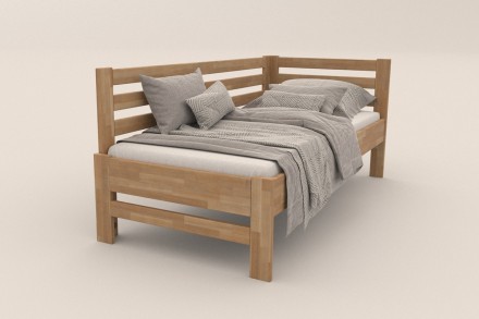 Jednolůžková rohová dřevěná postel Stacy, levý roh, provedení D1, 90x200 cm