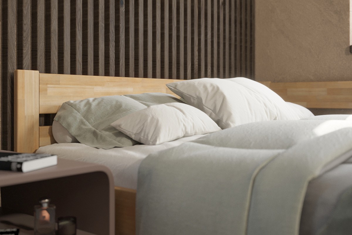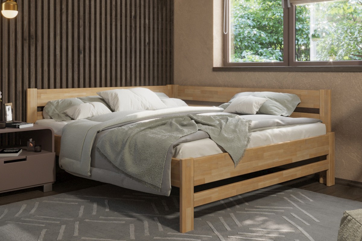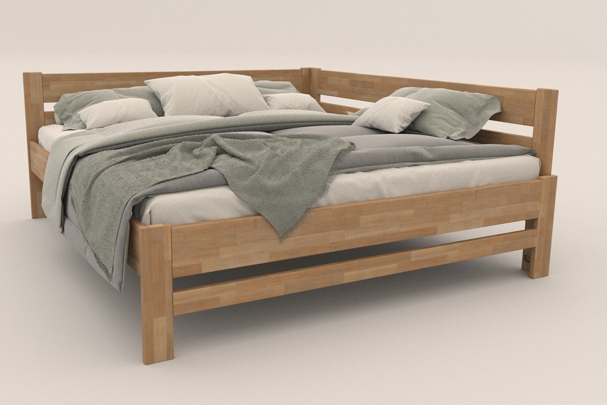 Rohová dřevěná postel Wanda, pravý roh, provedení BK1, 180x200 cm
