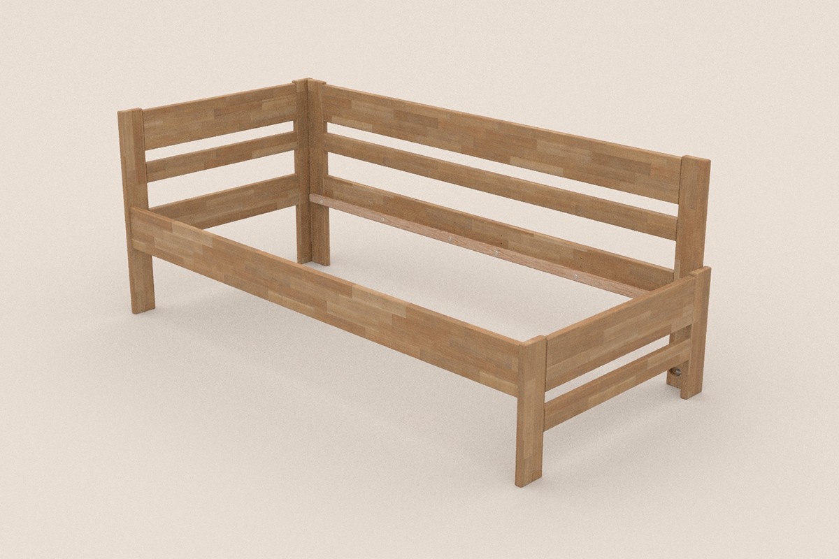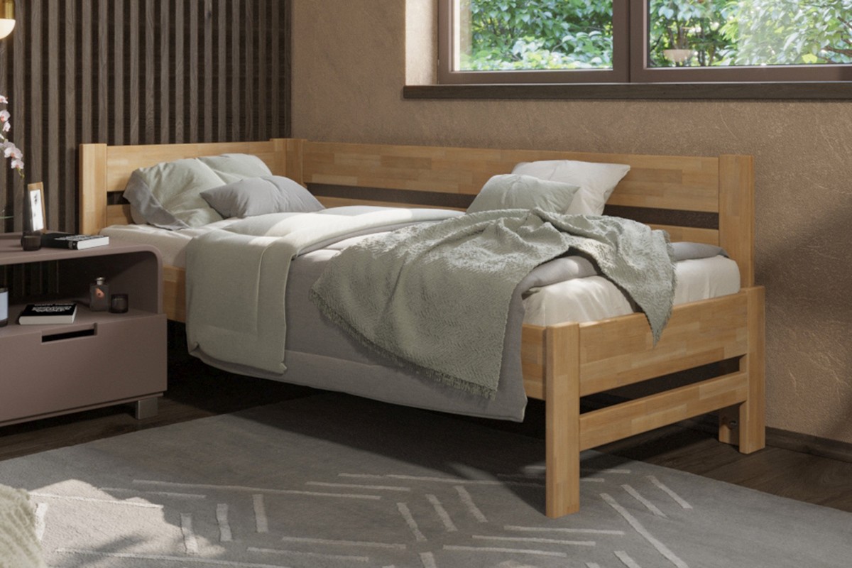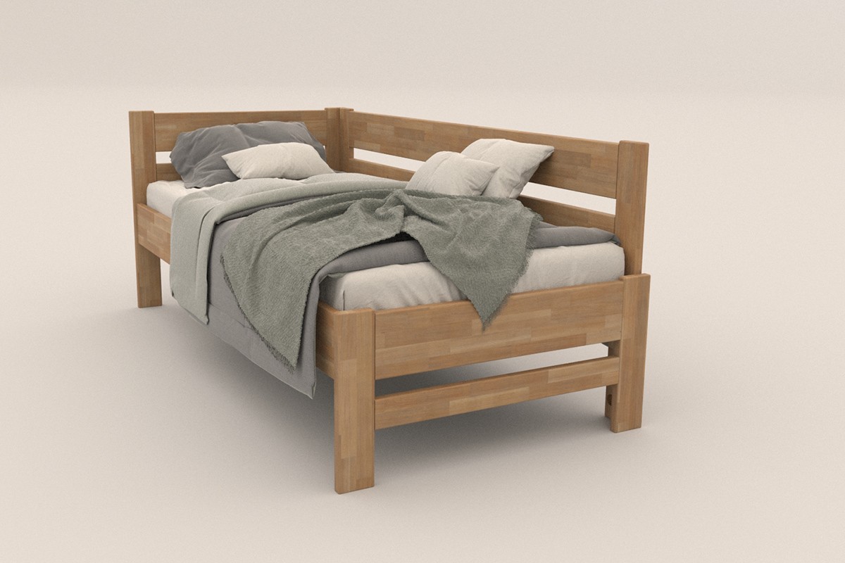 Jednolůžková rohová dřevěná postel Wanda, pravý roh, provedení BK1, 90x200 cm