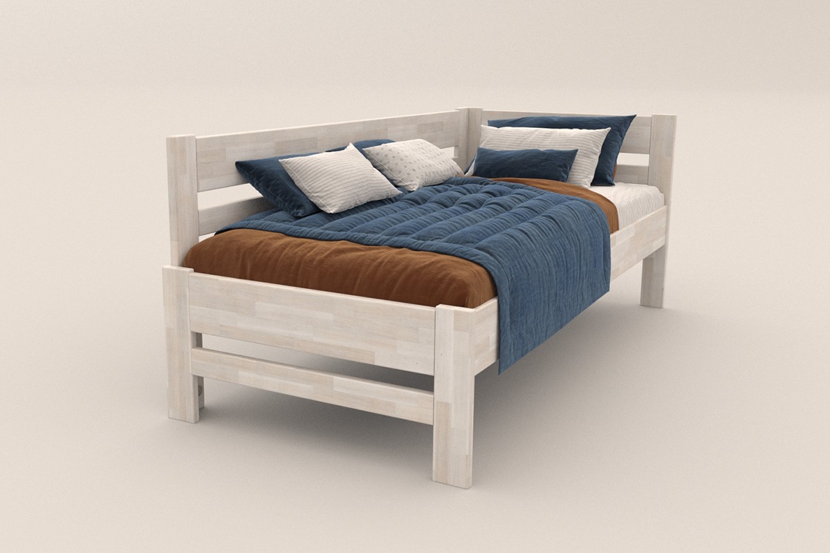 Jednolůžková rohová dřevěná postel Wanda, levý roh, provedení BO102 bílá, 90x200 cm