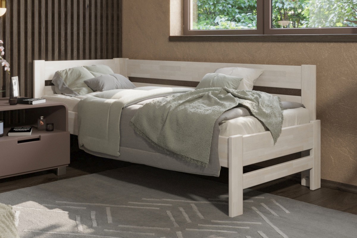 Jednolůžková rohová dřevěná postel Wanda, pravý roh, provedení BO102 bílá, 120x200 cm