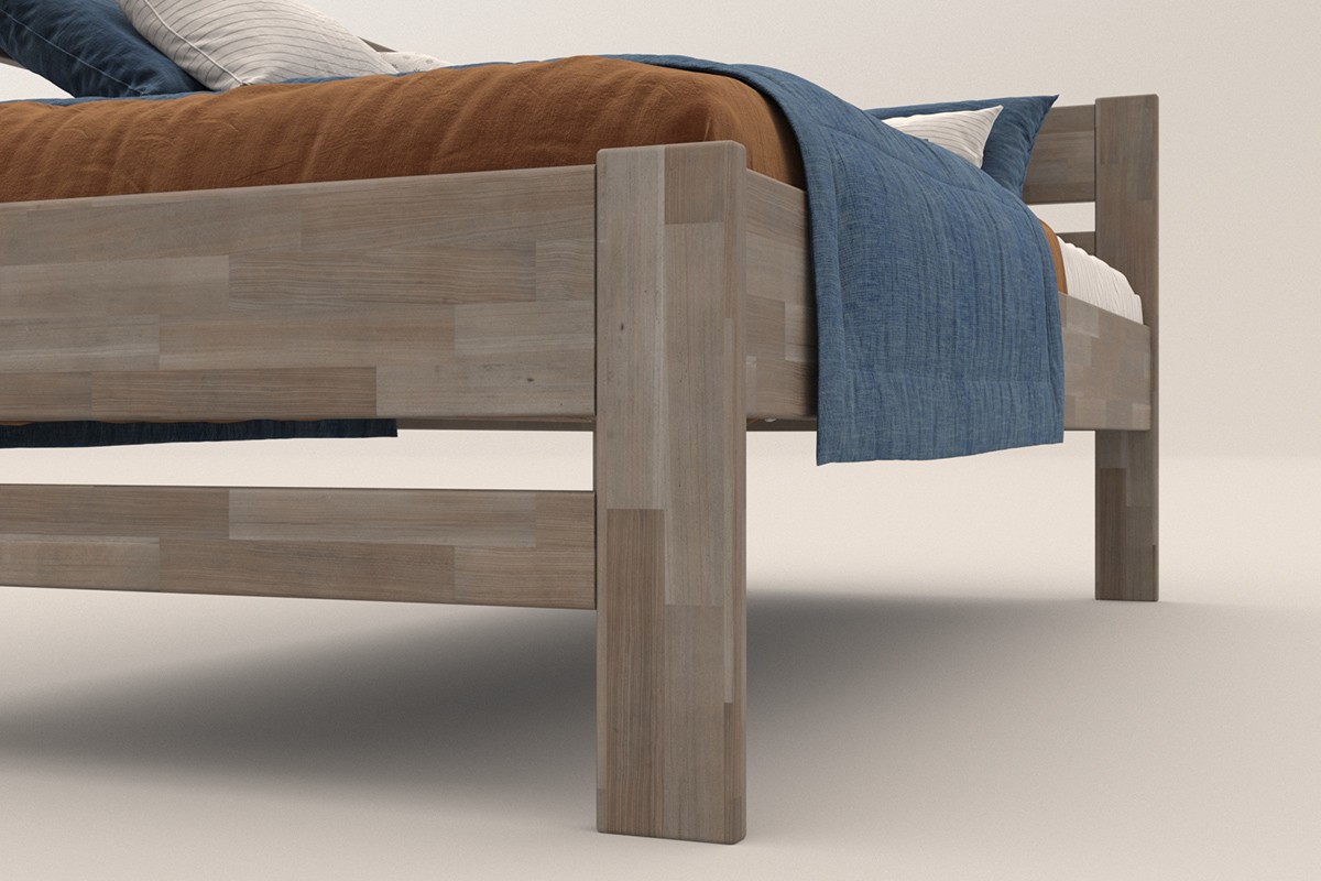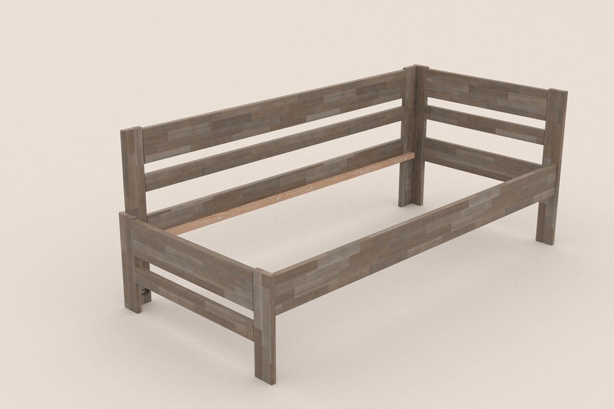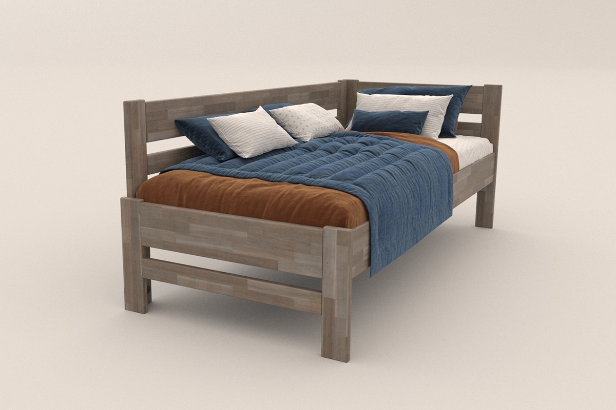 Jednolůžková rohová dřevěná postel Wanda, levý roh, provedení BO105 šedý granit, 90x200 cm