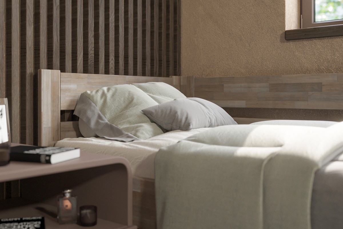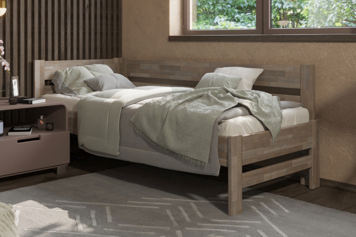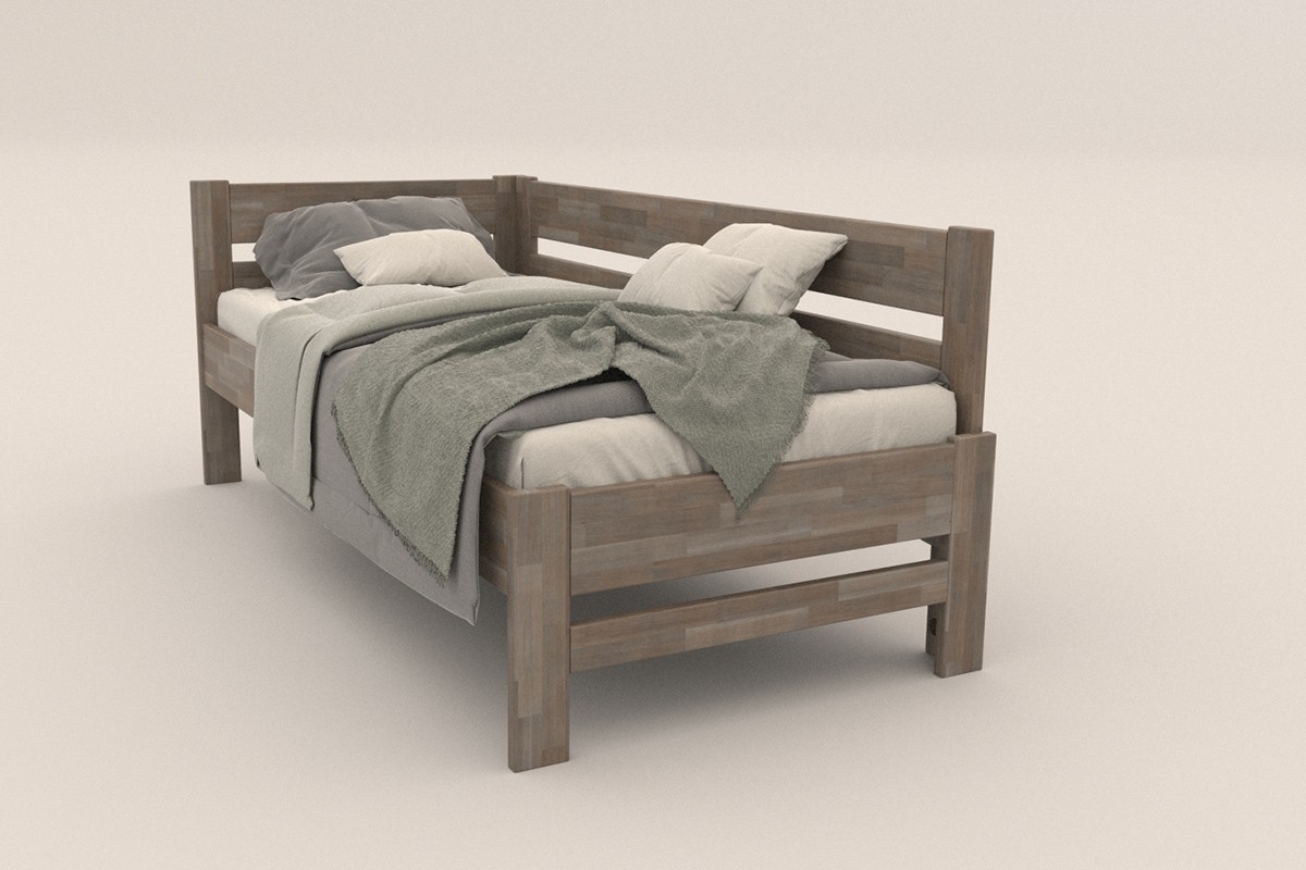 Jednolůžková rohová dřevěná postel Wanda, pravý roh, provedení BO105 šedý granit, 120x200 cm