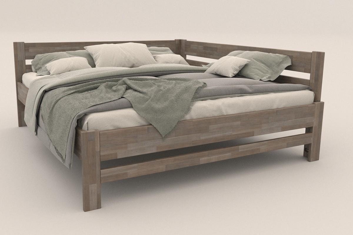 Rohová dřevěná postel Wanda, pravý roh, provedení BO105 šedý granit, 140x200 cm