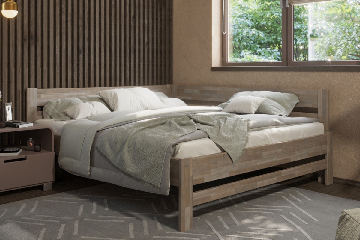 Rohová dřevěná postel Wanda, pravý roh, provedení BO105 šedý granit, 180x200 cm
