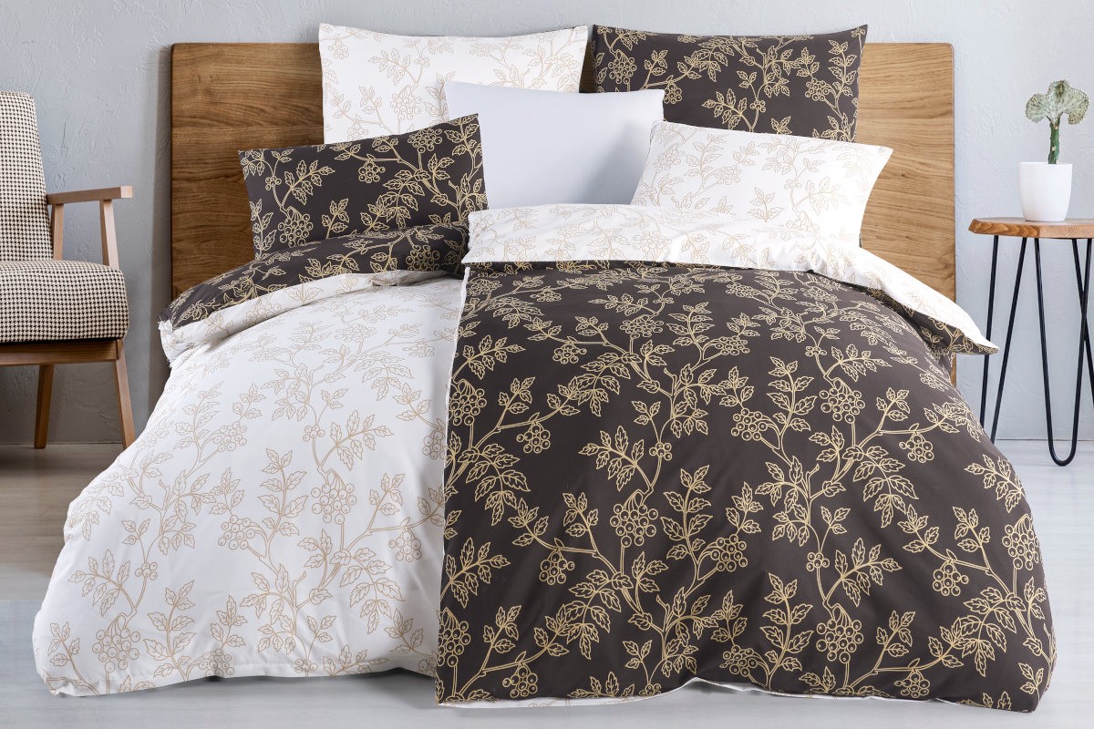 Povlečení Nora je vyrobeno z kvalitní bavlny, jejíž vlákna jsou jemná a příjemná na dotek. Kombinace bílé a hnědé barvy se vzorem zlatých listů působí elegantně a útulně zároveň. Materiál skvěle odvádí vlhkost, téměř se nemačká a dlouhodobě si zachovává svůj tvar i barvu. Jakmile jím povlečete své peřiny, už nebudete chtít z postele vstát. Jemnost bavlny vás doslova obejme a dopřeje vám dokonalý odpočinek.