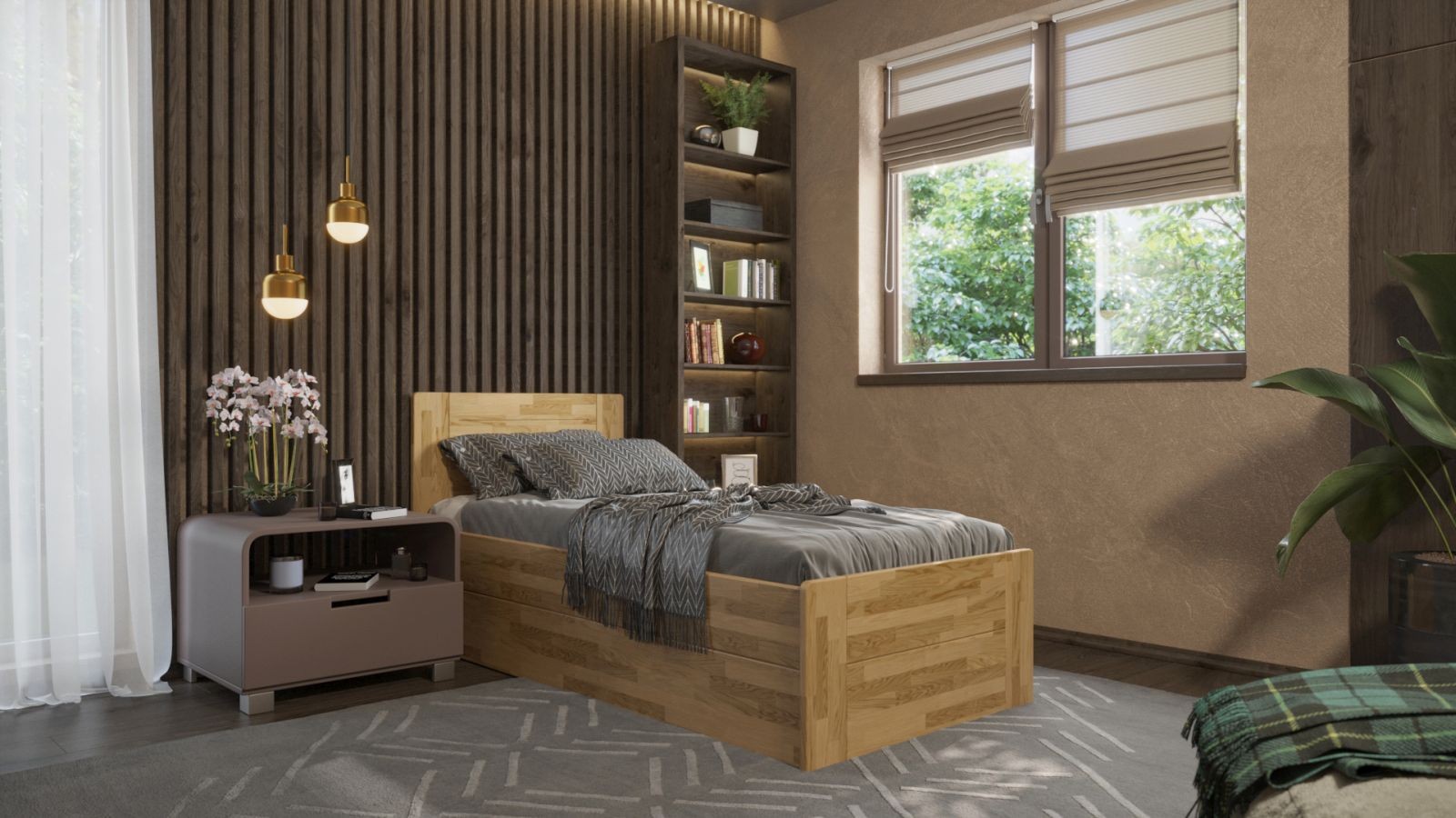 Jednolůžková dřevěná postel Amien, provedení box, masiv dub, D1, 80x200 cm
