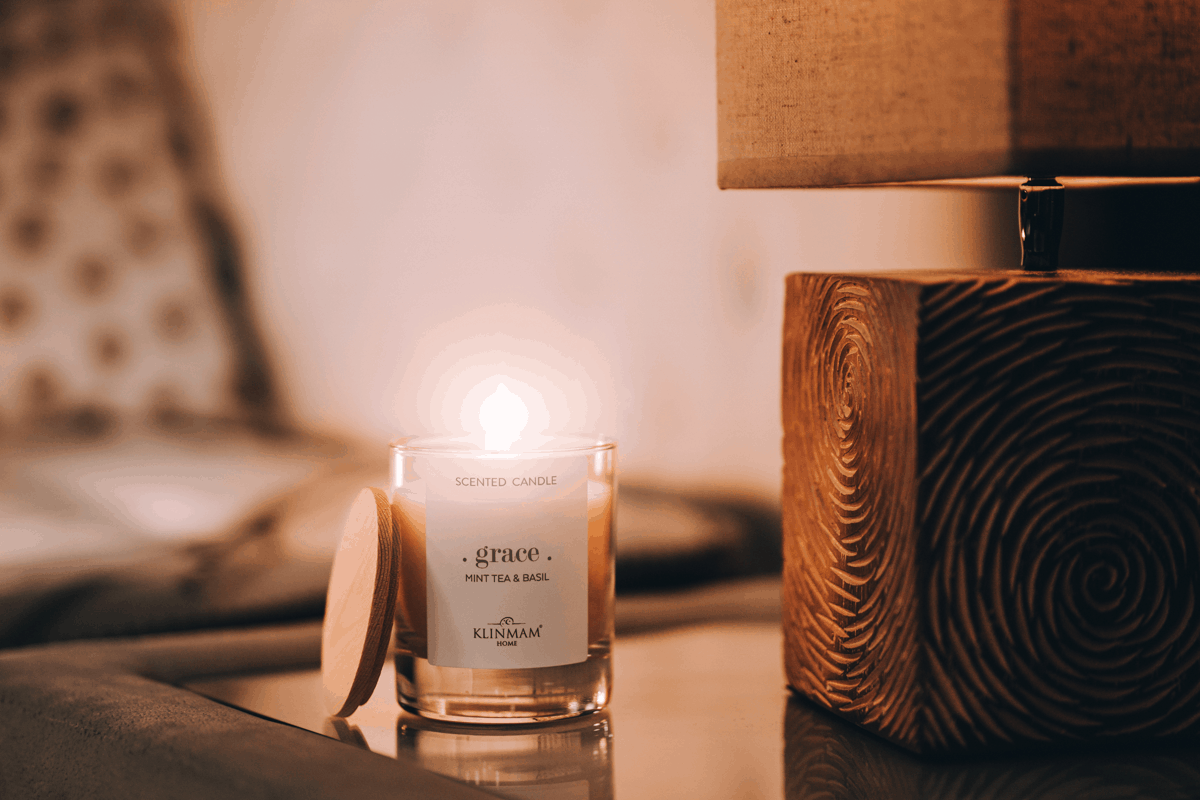 Luxusní svíčka Klinmam Home Mint and Basil z přírodních surovin se svěží vůní máty a bazalky