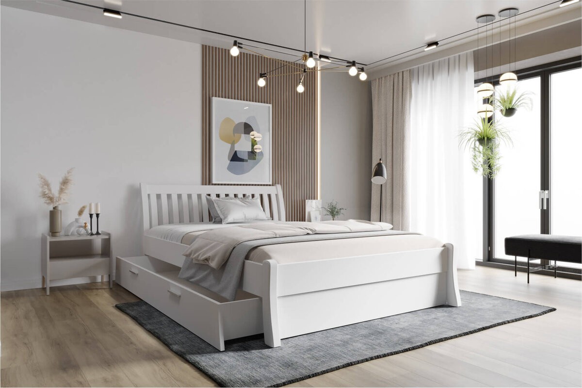 Bílá postel z masivu borovice Felix s úložným prostorem, 180x200 cm