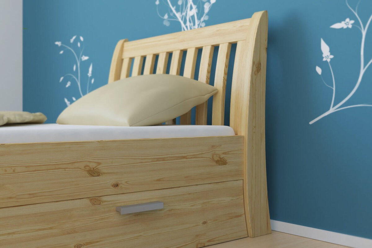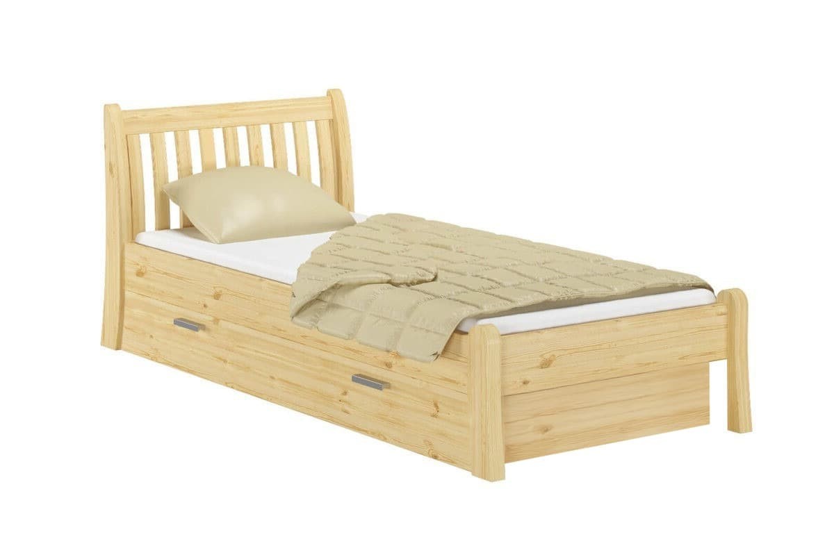 Jednolůžková postel z masivu borovice Felix s úložným prostorem, přírodní provedení, 90x200 cm