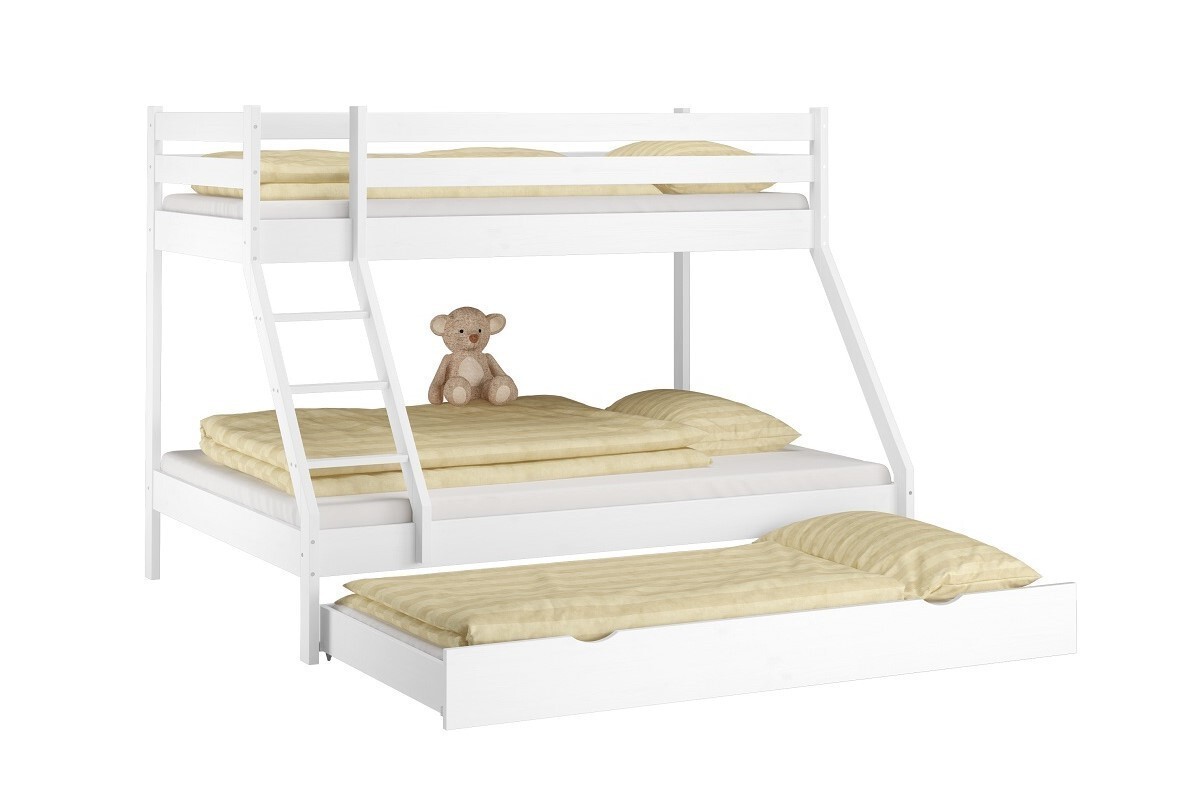 Bílá postel z masivu borovice Theo s úložným prostorem, 90x200 cm