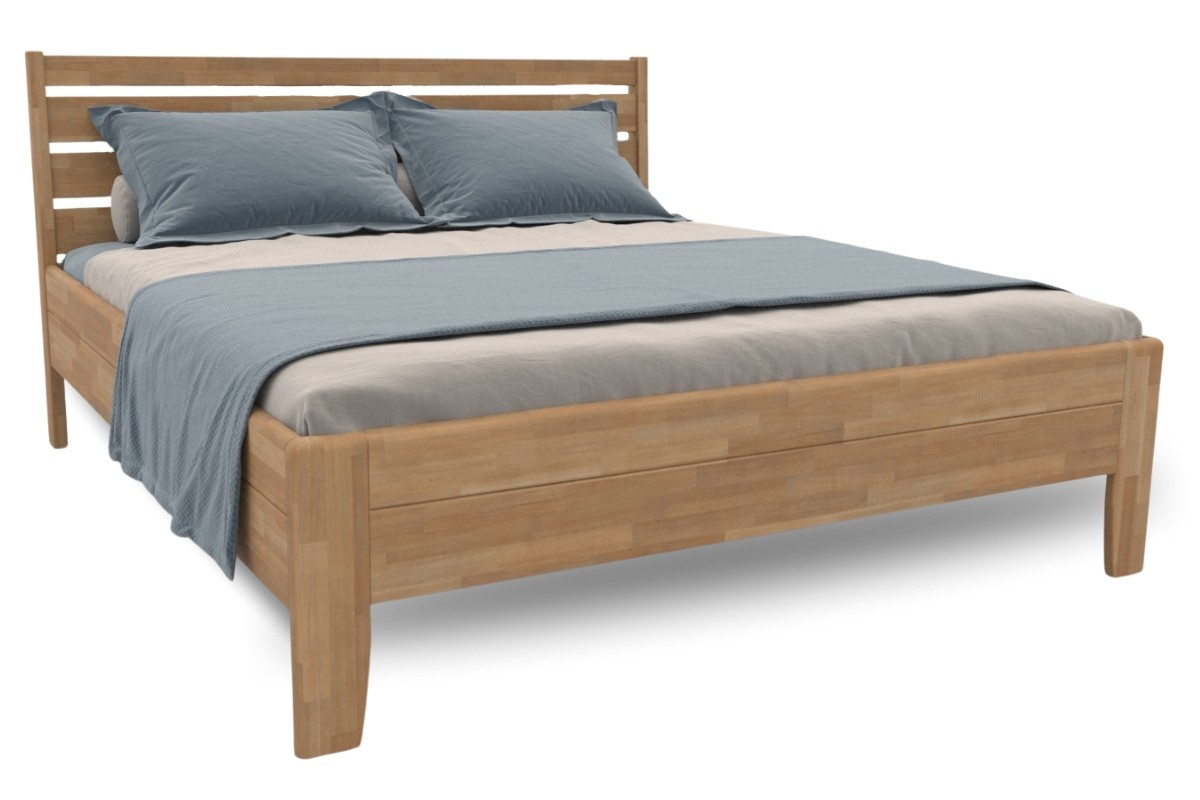 Nadčasová postel Lugo vnese do vaší ložnice nádech přírody díky své lakované úpravě v přírodním lesklém odstínu. Dominantní hranaté čelo v kombinaci s jemně zakulaceným rámem nejen skvěle vypadá, ale také zajišťuje maximální bezpečí a pohodlí. Postel je vyráběna v České republice s důrazem na precizní výběr nejkvalitnějších materiálů, jako jehladký buk, který se pyšní výjimečnou pevností a tvrdostí.