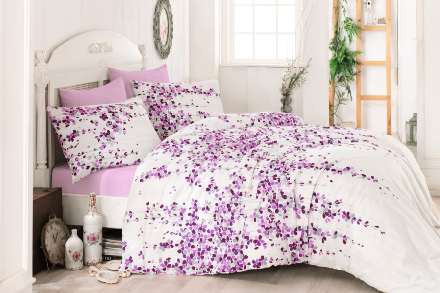 Povlečení s šedými a fialovými květy, 140x200 cm + 50x70 cm