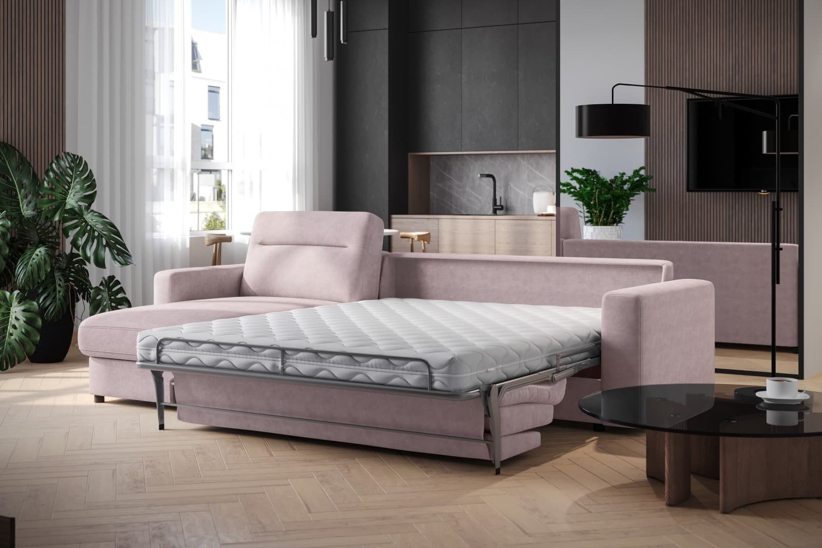 Rohová rozkládací pohovka pro každodenní spaní Lugano v nadčasovém designu zaujme svou jednoduchostí a elegancí. Tento model doporučujeme nejen těm, kteří nemají dostatek prostoru v interiéru a hledají pohovku, kterou během pár okamžiků přemění v plnohodnotnou postel, ale také do větších domácností, jelikož se dá skvěle využít při jakékoliv návštěvě.