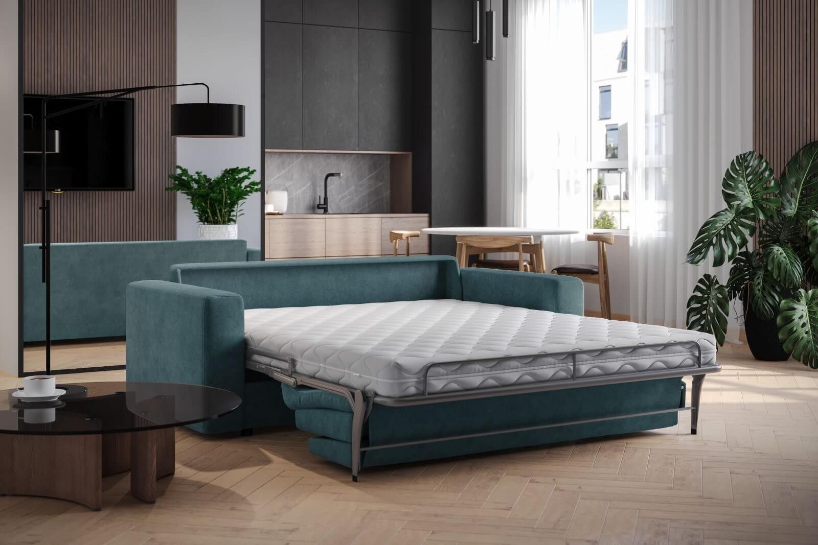 Součástí sedačky je standardně matrace z HR pěny o výšce 16 cm, která je odolná proti deformaci. Sedačka disponuje novým, pokročilým mechanismem, který Vám umožní snadno přeměnit Vaši pohovku na velmi pohodlné lůžko. Obsluha večerního rozkládání a ranního skládání je mimořádně snadná a lehká. Po rozložení odhalíte pohodlnou postel s matrací o výšce 16 cm v rozměru 140x190 cm.
